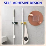 - MULTI-PURPOSE STORAGE: Self adhesive mop organizer is helpful to organize the mop,, umbrella, brush, shovel and other tools, keeping your home clean. the small hook can cleaning cloth, towel, hair tie or other lightweight items, improving storage .